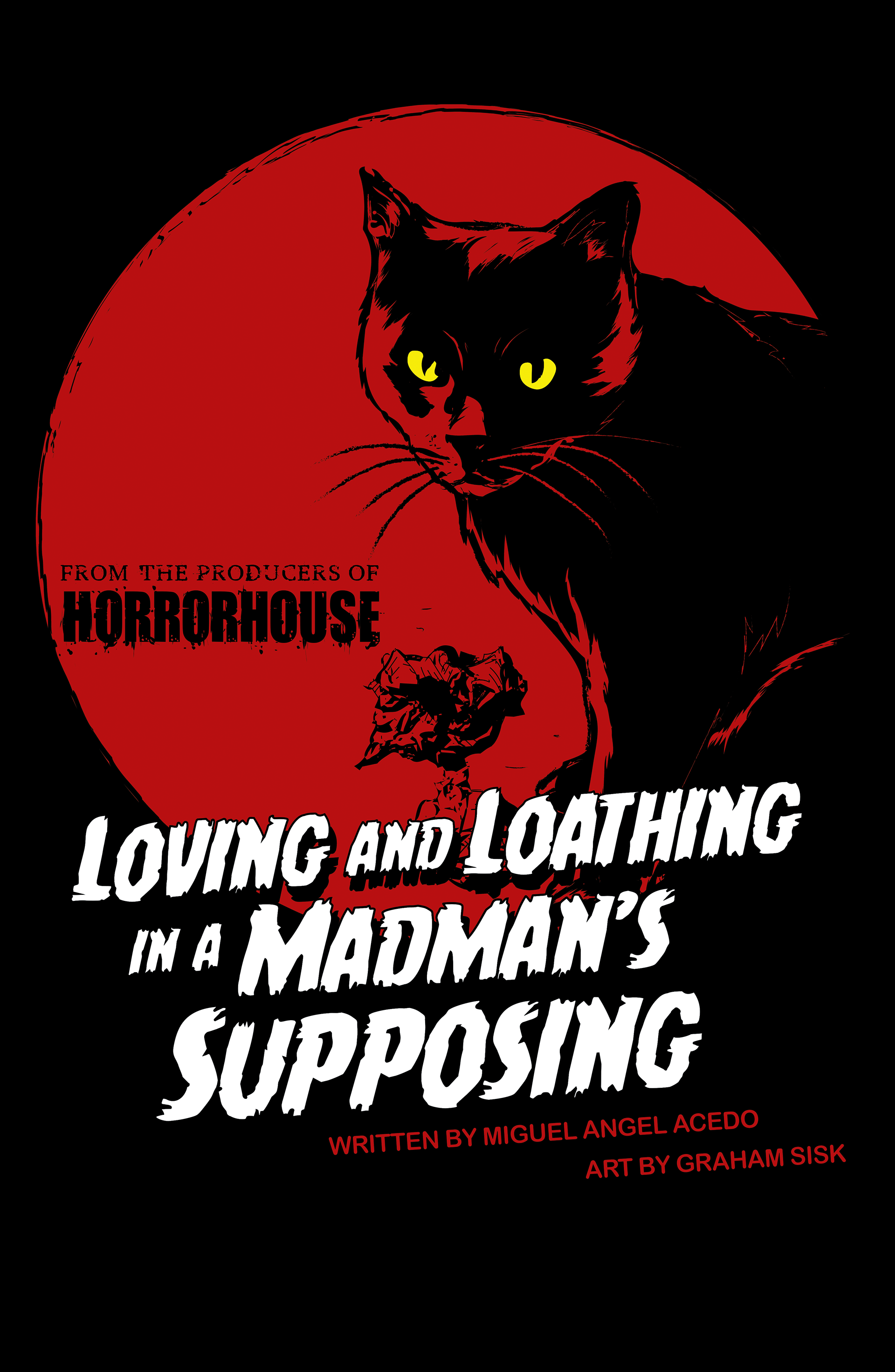 Horrorhouse: Graphic Novel Illustration and Design. Written by Miguel Acedo, this graphic novel is a horror anthology of new stories based on two of Poe's short stories, The Black Cat, and Morella, re-imagined in the present day and the 1950s respectively. The book is also an homage to old horror comics and movies taking much inspiration from old Hammer horror films and old horror comics anthologies like Tales from the Crypt and Creepy. The book ties both the film and comics media influences together through the series setting of a drive-in movie theater circa mid-century,complete with poster previews of upcoming stories.